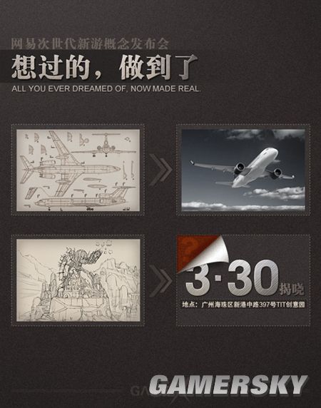 记者今日获悉,网易首款3D次世代大作代号“GAME-X”将于3月30日(周五)在广州开启次世代概念发布会,届时将正式公布游戏名称、类型以及研发视频。 据介绍,本次次世代概念发布会主题为“想过的,做到了”。邀请函以简笔画为核心,简单直接的描述人类从构思到实现的能动过程。