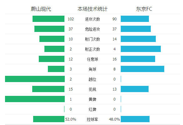 昨天这场亚冠,蔚山现代主场1比1平东京FC。上图为赛后技术统计,看过本场比赛的朋友们可能会有这种感觉,东京FC反客为主,在场上制造了更多的机会。确实如此,本场的赛后统计数据各大网站不是特别一致,比赛前70分钟,蔚山现代在场面上是略有劣势的。 这场内容,大老帽给出了总进球数2和4的选择,也提出了主队非平即穿的建议。特别提到了大老帽原创思路“小输大赢”,放在本场比赛非常适用。一直关注大老帽的朋友们应该会比较熟悉此思路,建立之初是为了深指之下的“穿与不穿”,现在看来,浅指方面能获得更大收益。 多说一句蔚山现代吧。蔚山现代的球迷在韩K里是特别有态度的存在,这些在昨天的直播镜头里非常明显。在上赛季初,蔚山现代由于多场连续不胜,球迷自行空场,虽然最终“委屈”失冠,但整个赛季还是特别成功的。大老帽昨天提到这场球是亚冠蔚山现代的临界点,下一场继续坐镇主场,那么澳超球队珀斯肯定会给其制造麻烦。