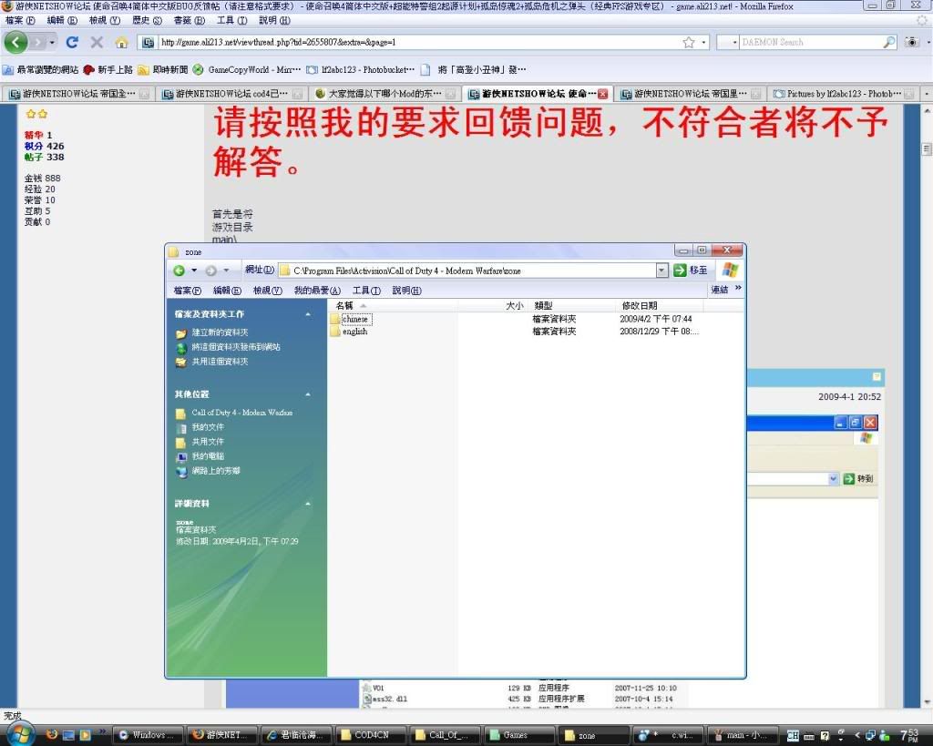 摆脱,lz你的补丁里就有两个上层目录,什么叫如果解压正确install和iw3sp.exe应该在一个目录里,可能么?!