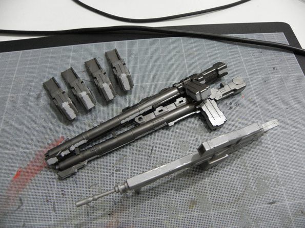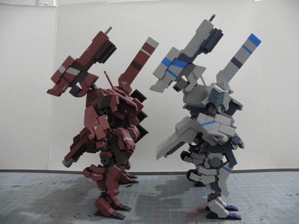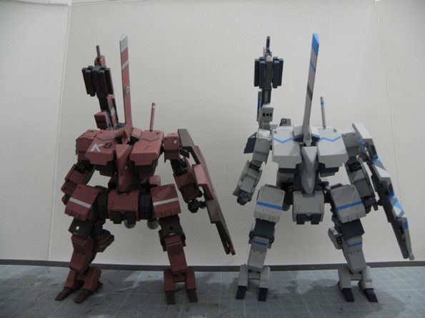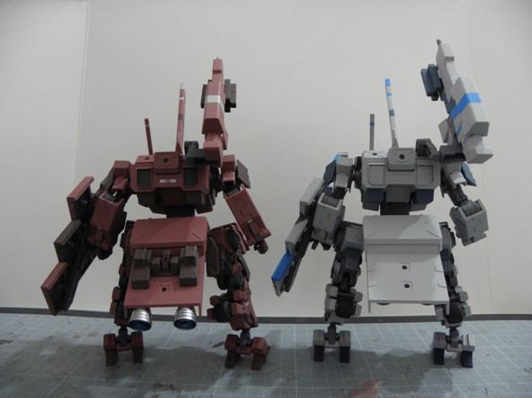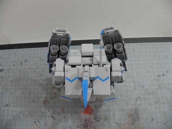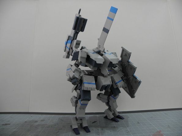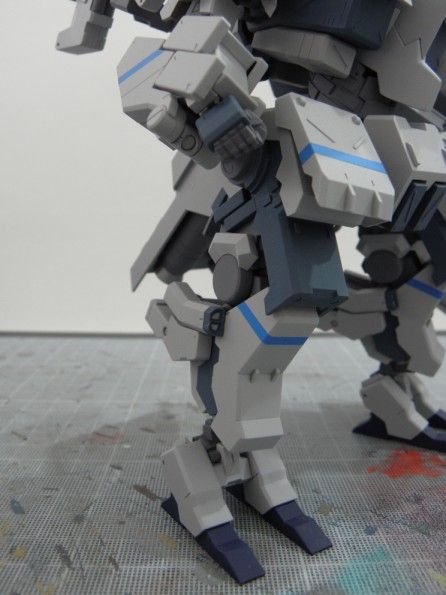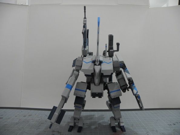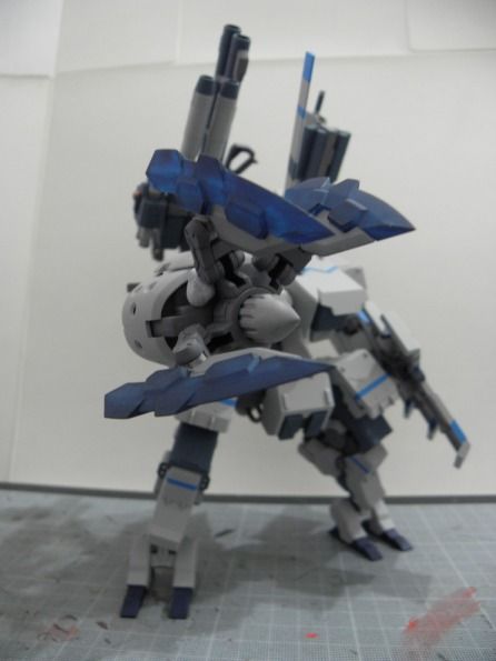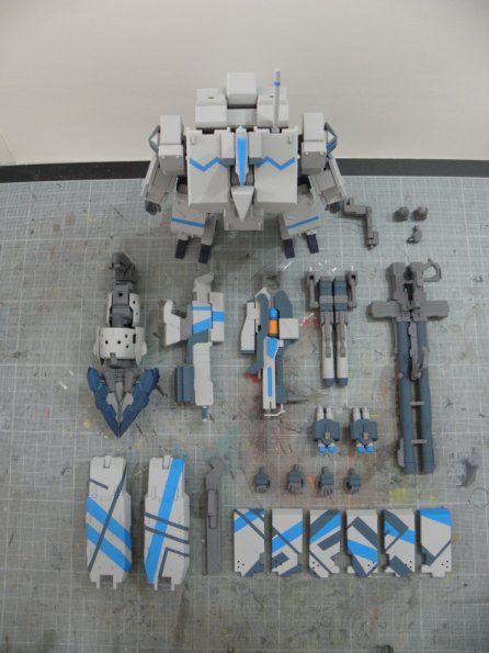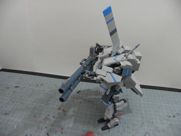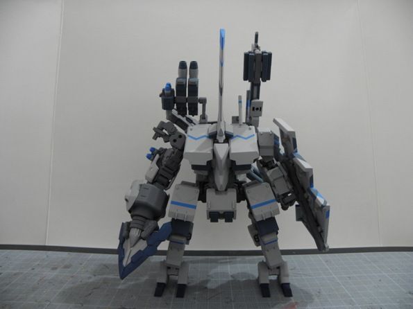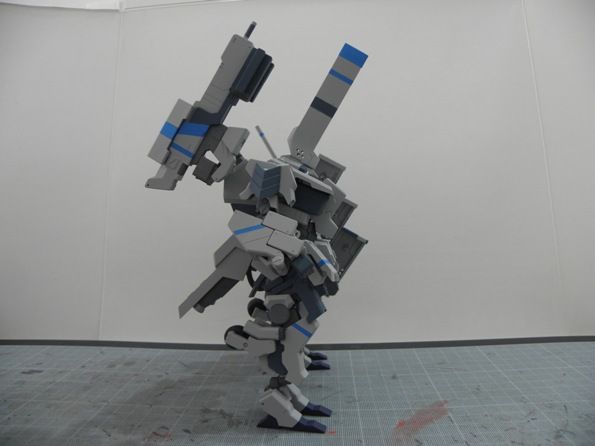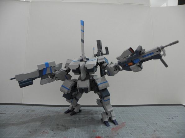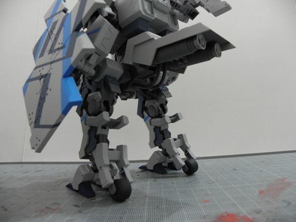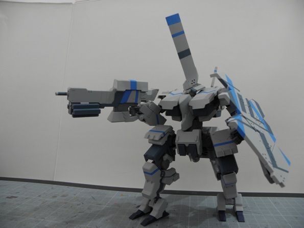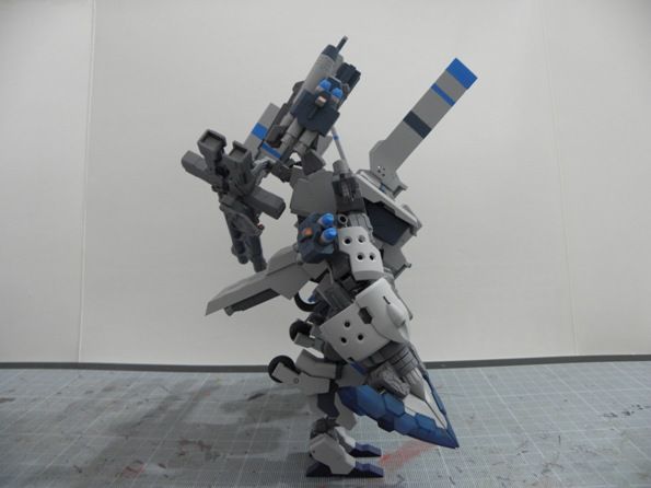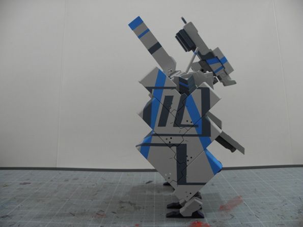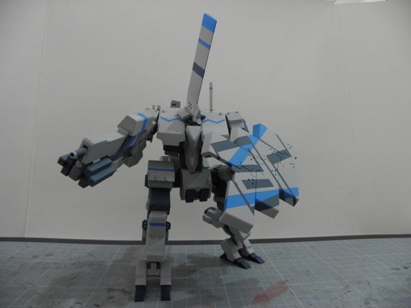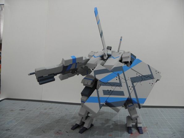 本來我是打算砌隻與上次不同原裝輝鎚出來,剛開始時也只是輕輕地加了支小型加農砲在背部。但可能是ZOIDS砌多了,總有種"掛武裝"的衝動。因此又如上次般加裝三爪鑽臂;又買了另一份weapon set。到拍照的末段時,輝鎚又成了"攞你命三千"的再版,差別只是由全"彈"齊發變成全"砲"齊發:68: 。這次沒用PS膠版的素體,只用了隨盒附錄的ABS膠版素體,加上輝鎚的倒三角設計,它是一邊擺姿勢,一邊前仆後跌:time: 。用色方面,我是參考了"廣末"上年的Vic Viper,以light grey為本,用dark sea grey作關節色、medium blue來加強層次、sky blue作重點highlight。又上次已將備用水貼花得七七八八,所以今次沒關節位的小字 warning decal了,只以科幻迷彩方式,在盾面拼出"四,八,一"的機號...。到我完成第二次輝鎚‧重甲後,卻在官網見到官方版的"無腳重甲",看來第三次輝鎚‧重甲在望了(寫到好像機戰的系列名般):46: