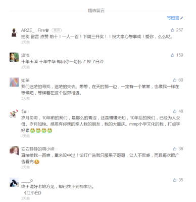 与此同时,有关《我是江小白》的话题讨论也在各大门户网站、论坛、贴吧以及微博、微信朋友圈中迅速升温。很多网友在观看了之后,都表示这是一部走心的国产动漫作品,仿佛一下子触动了自己内心深处对于曾经青葱岁月的回忆。“很久没有看到这种很上心的国产动画了,内容很充实,剧情线拉得很恰当,ED中添加了些会议的片段。”、“这部动漫其实之前我根本没有关注,说实话,但是总的来说真的不错。”、”让我看到了美丽的重庆,谢谢你们,让我邂逅了这样一个美丽的故事。”