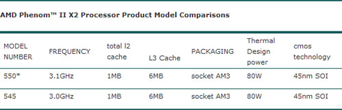 AMD Phenom II X2 550 BE处理器绝对是一款让人兴奋的产品,因为它和任何一款Phenom II处理器一样有着共享6MB的三级缓存容量和快至3.1GHz的预设工作主频以及开放倍频的黑盒版特征。AMD Phenom IIX2 550 BE处理器无疑是对抗Intel Core 2 Duo E7xxx甚至是E8xxx的生力军,要知道在此之前它们的对手是AMD Phenom II X3 7xx处理器,而Phenom II X2 550 BE的问世能让X3 7xx更多的去应付Core 2 Duo E8xxx了。
