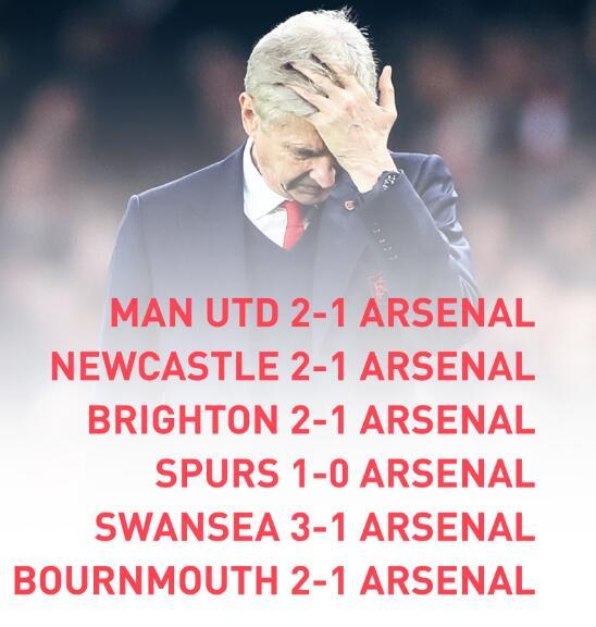 在节礼日的频密赛程中,温格的阿森纳迎来低估、下滑。进入18年之后,从客场1-2负于伯恩茅斯开始,枪手先后在对阵降级区球队斯旺西、同城死敌热刺、升班马布莱顿与纽卡时全部输球。 持续的低迷表现,让温格的阿森纳逐渐丧失了争四的希望,只能将重心放在欧联杯。因此,欧联杯比赛前后,联赛中有所保留的阿森纳在客场输给了热刺、布莱顿以及纽卡。在加上今晚输给曼联,阿森纳为了欧联杯的争冠,可谓是完全放弃了联赛。 这种“放弃”策略,让阿森纳创造了一个尴尬的纪录:新年之后英超客场六连败。而阿森纳上次遭遇这种窘境,还要追溯到遥远的1966年。当时的阿森纳正处于球队的低谷期,在整个60年代,阿森纳始终无缘联赛冠军,最好的成绩就是两次联赛杯的亚军。