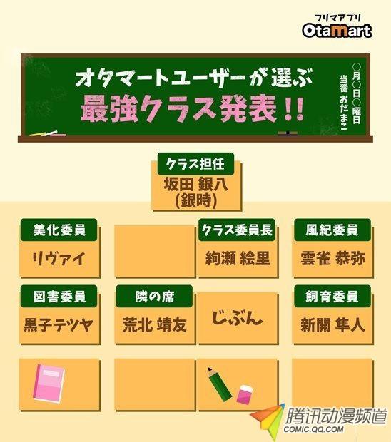 日本面向ACG用户的人气跳蚤市场手机软件“otamart”今年2月对用户进行了一次“用动漫角色组合一个理想班级”的调查。现在调查结果终于公布。