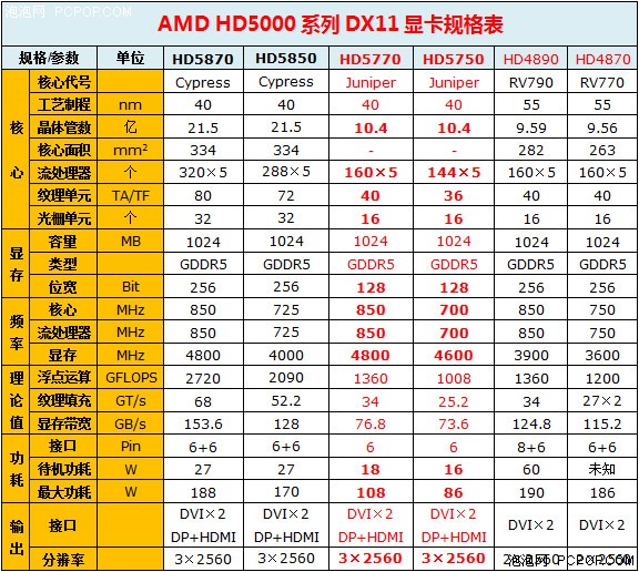 ● HD5770/HD5750规格全表:1GB显存成标配