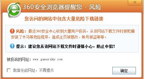 [url=http://www.gamersky.com/showimage/id_gamersky_01.shtml? ] [/url] 其二,用过国外杀毒软件的读者都了解,使用含有危险内容的软件,或点击有危险内容的页面时,会跳出安全提示,但也仅仅是当前页面存在危险之时。大张旗鼓封禁游民星空全站首页,这又是何道理?难道游民星空主页都有所谓的“流氓软件”下载么?