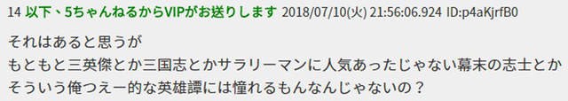 “人们不都是喜欢三国志或幕末志士那种英雄故事吗?”