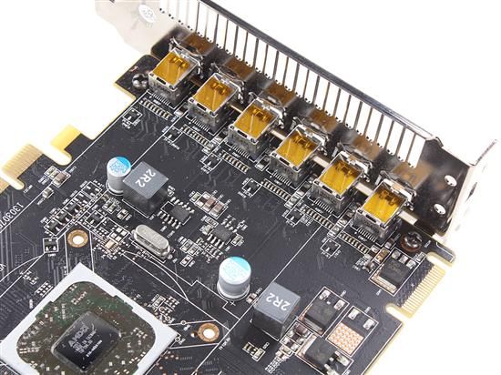 和之前发布的XFX 5970 4GB EF 6 Black Edition Limited一样,这款显卡虽然只是中端的HD 7750,但依然配备了6个mini DP接口。