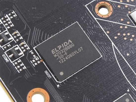 显存采用的是日本尔必达W2032BBBG-50-F颗粒,50代表理论频率为5000MHz也就是0.4ns。