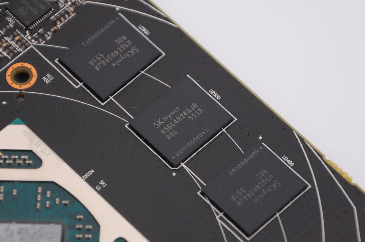 显存为海力士的GDDR5颗粒,单颗容量为512M,8颗组成256b、4G容量。
