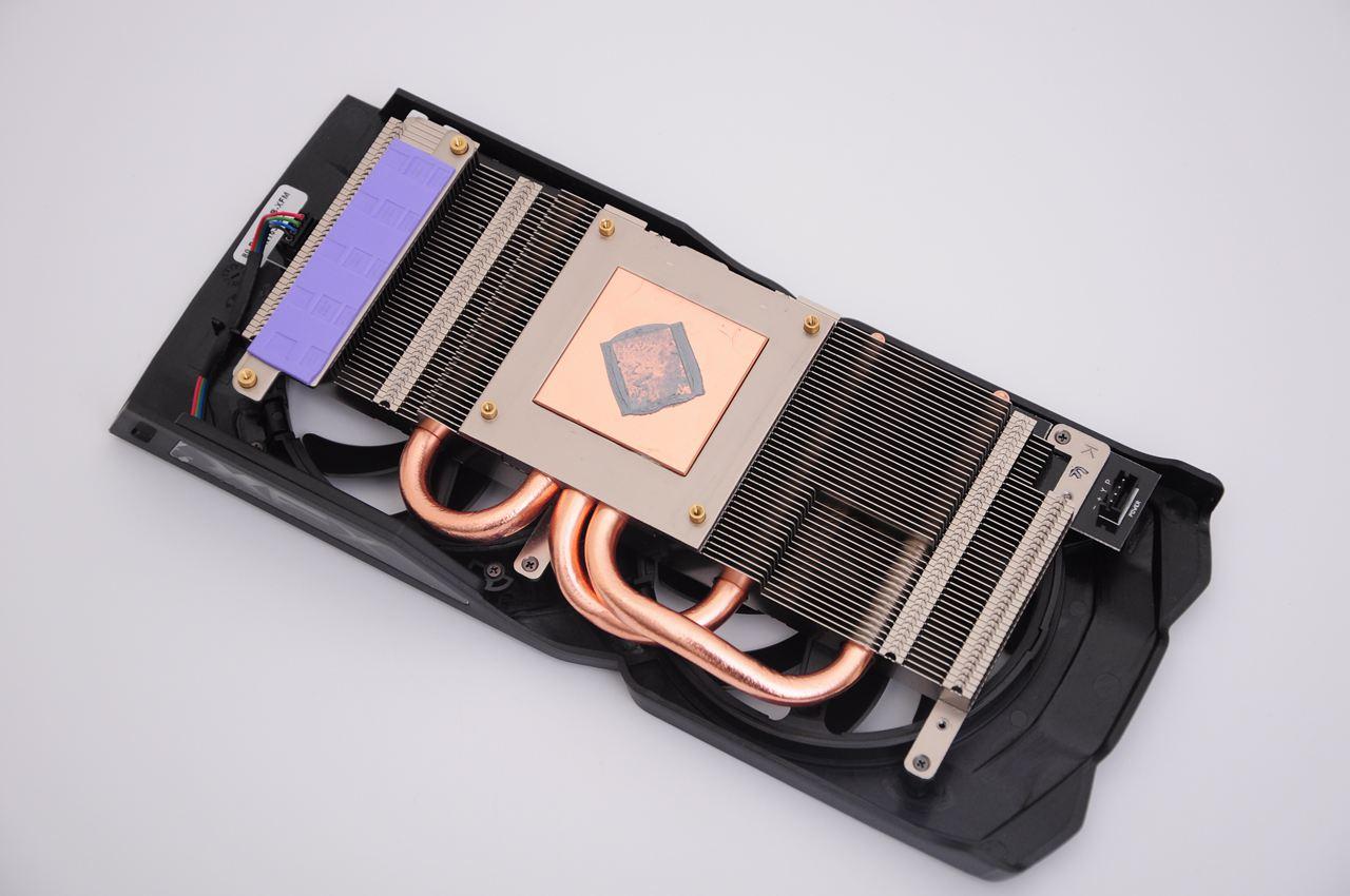 散热器为3X8mm热管+铜底+大面积铝鳍片结构,唯一的遗憾是热管木有镀镍。