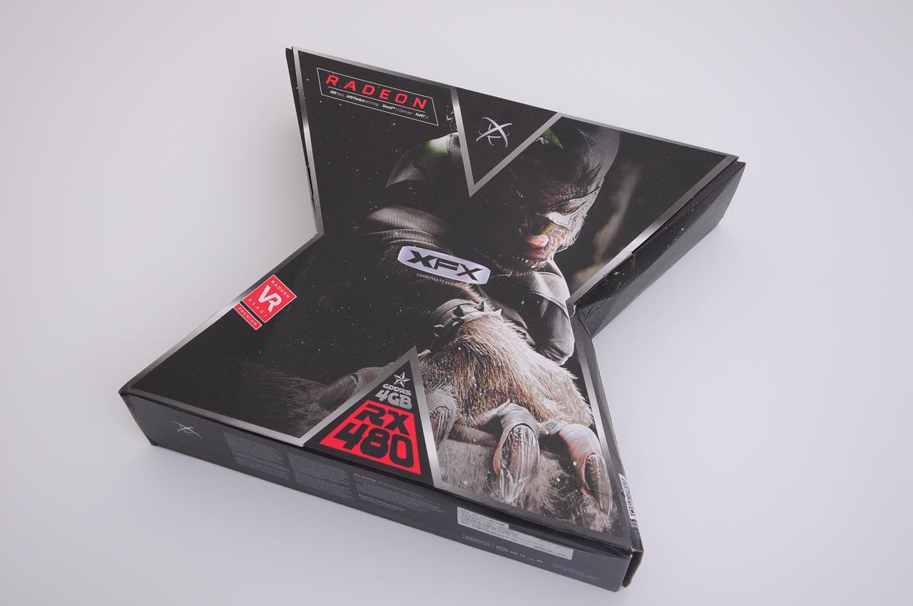 然后就是这次的交火主角之一:XFX RX480 4G 黑狼 进化,盒子采用了XFX一贯的X形包装。
