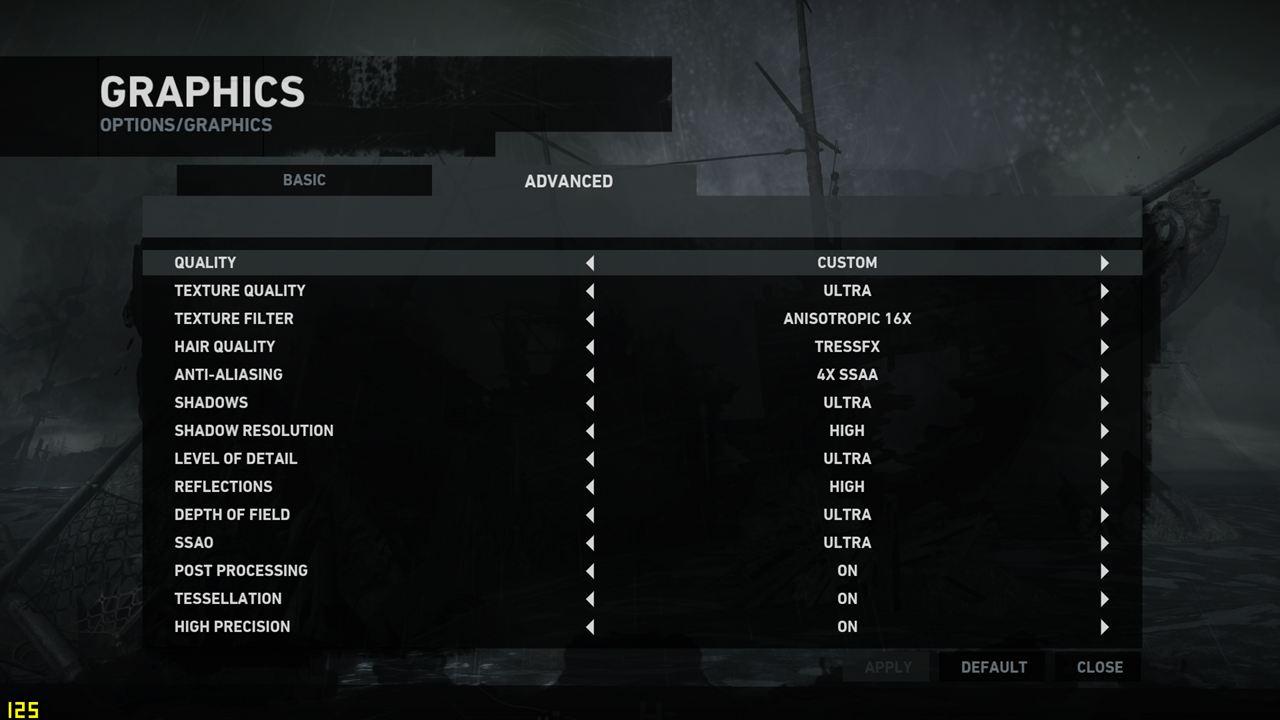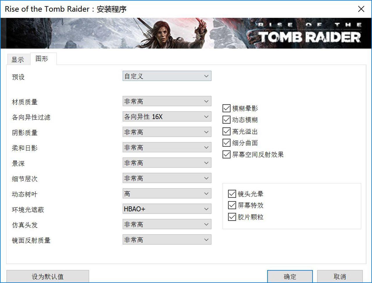 DX11游戏测试,古墓丽影9分辨率设置,下图为1080P分辨率设置,其余档位除了分辨率不同,其他特效都与1080P相同,这里不再赘述。