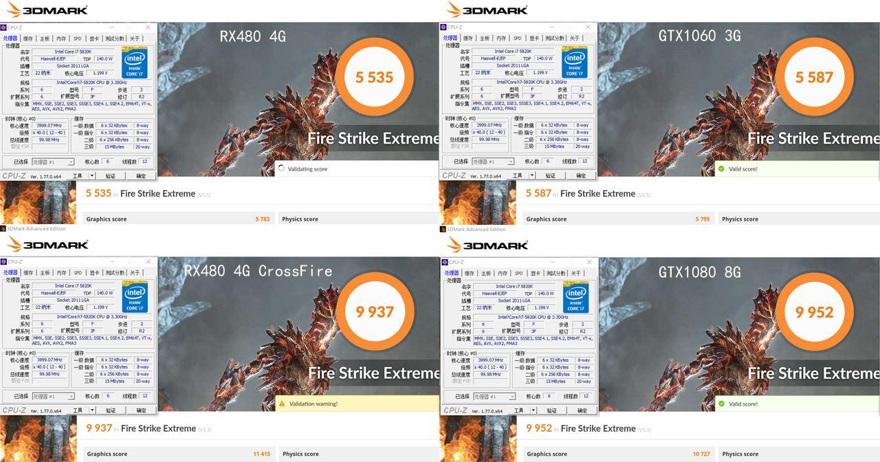 3Dmark FireStrike Extreme,单卡480 4G略输,双卡480 4G略输。