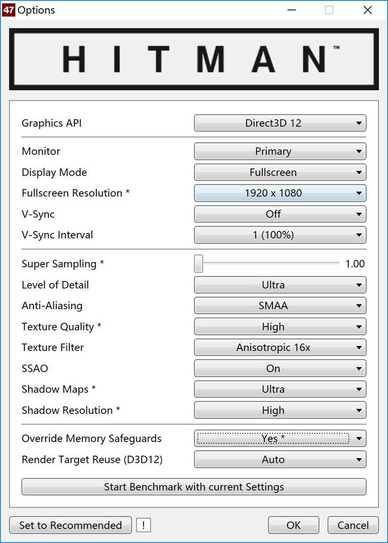 DX12游戏测试 杀手6,分辨率及特效设置。