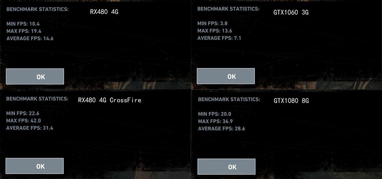 2160P分辨率测试结果,GTX1060 3G再次爆显存,双卡RX480 4G略逊GTX1080 8G