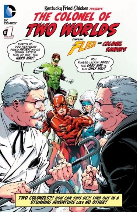 在10月8日至11日举行的美国纽约国际动漫展上,肯德基炸鸡与漫画出版社巨头DC漫画联手打造肯德基漫画《两个世界的肯德基(The Colonel of Two Worlds)》。 转播到腾讯微博