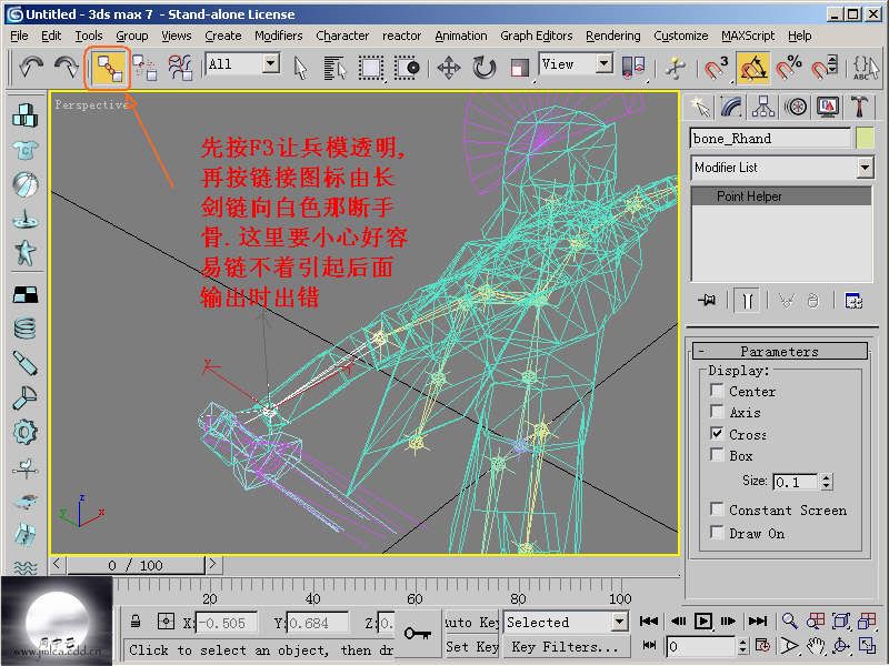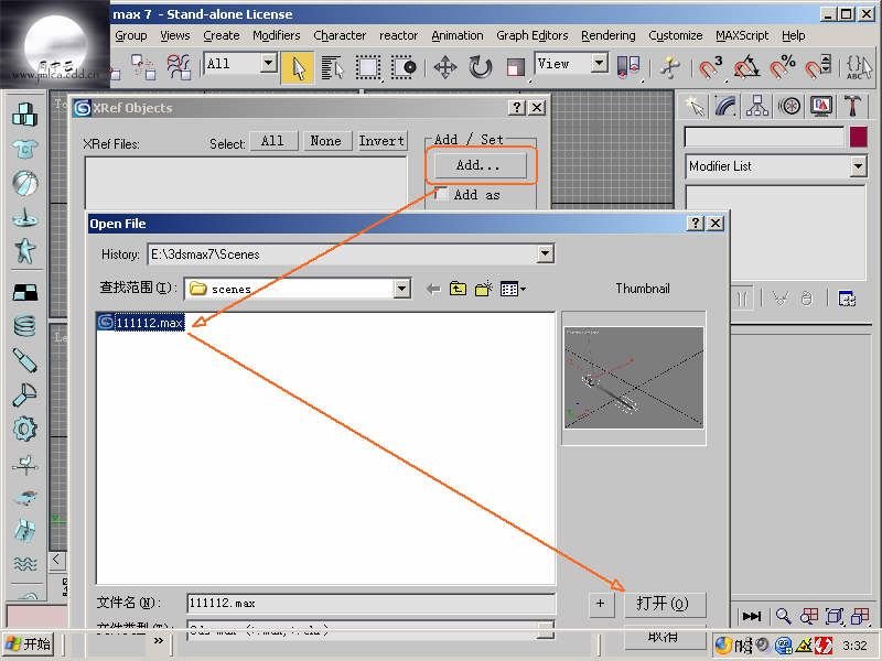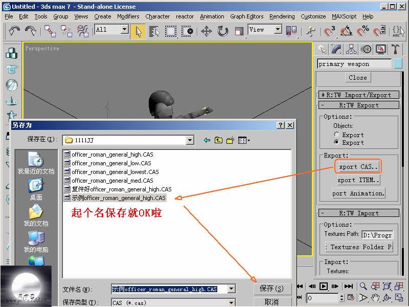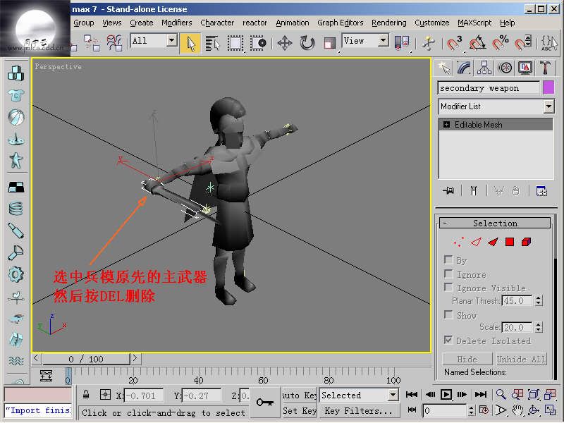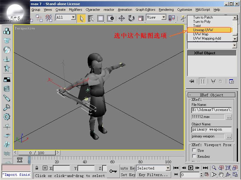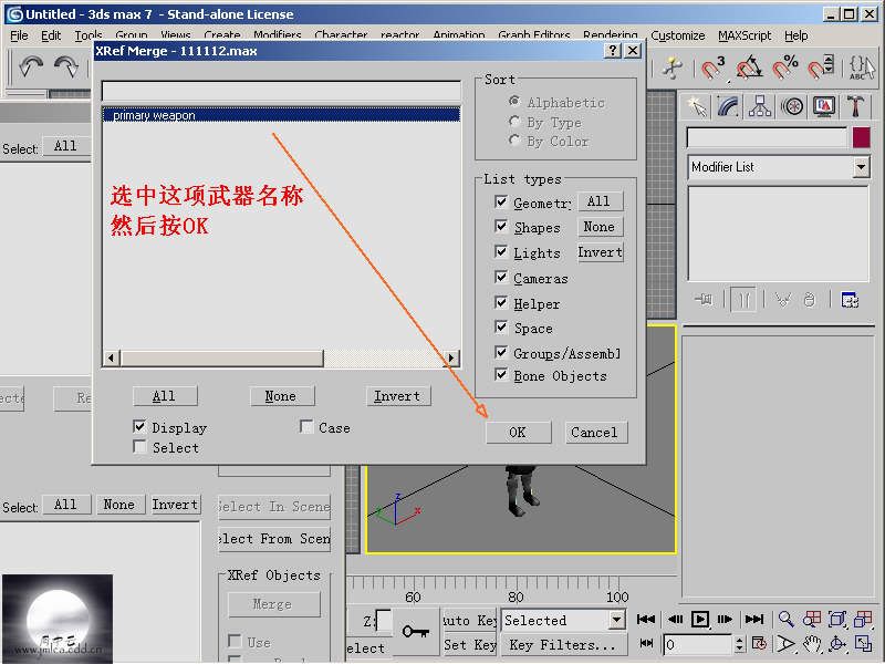 四>选中主武器选XREF SCENE...这一项然后选NVERT SELECTE把它导出