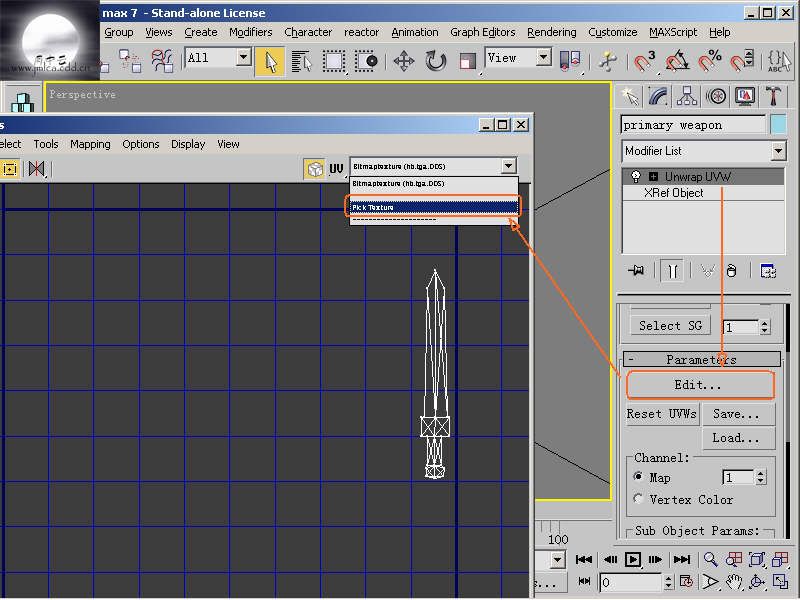 十四>回到3dMAX下点选 unwrap uvw下的EDIT项