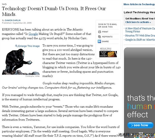 [转贴] 技术会让人类变傻吗? "纽约时报"说不 |