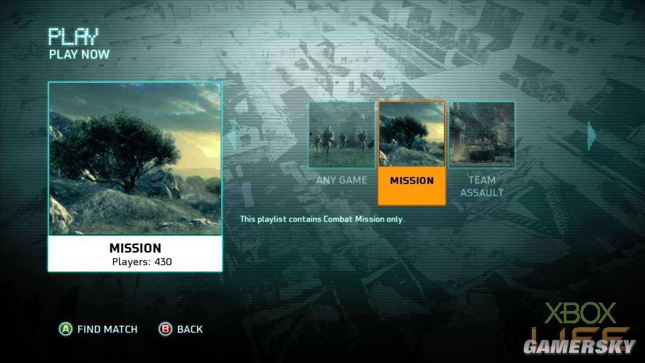 进入Quick Match选单后,玩家可选择Mission或Team Assault二种模式,或是Any Game让游戏为你选择玩法。