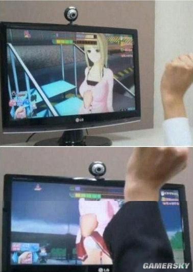 名为《妄想性仮想人格障害》(Mousousei Kasou Jinkaku Shougai)的H游戏,加入了摄像头抓取手势功能,他允许玩具穿过二次元空间直接通过动作与动漫人物对话。这……如图,我还能说什么呢,虽然捕捉到的动作实在不敢恭维,但起码已经将日本一些“奇怪”的思维带进了游戏。