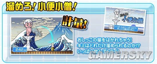 游戏通过感应器,可以测量到你这一次一共尿了有多少毫升,游戏还设有尿量排行榜,看谁尿的有多深。