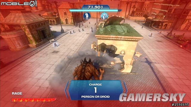 龙戈兽从笼子里冲了出来之后,它的任务就是在城镇肆虐一番,在路上的人都可以抓起来乱丢!移动的时候玩家就像怪兽走路一样大步大步往前踏!