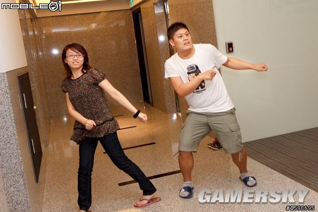 游戏中有很多段落是需要跳跃或是左右闪避的,右边的手机编辑欧提斯做了很好的示范!
