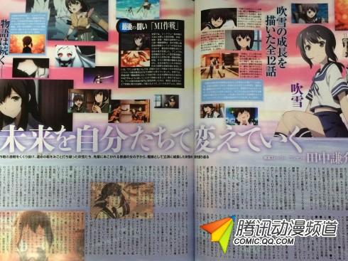 ·田中负责的部分 田中将原作游戏理念、作为本作品原案的构成内容制作好,交给了导演和系列构成花田十辉。作品舞台和战斗、角色设定等虽然沿袭了原作游戏,但是剧情却是动画原创的,因此一开始就创作好了所有集数的框架,不过随后田中跟导演和花田说:“虽然做好框架了,不过没必要非得拘泥于这个框架。希望能够制作出更有利于动画的风格来。” ·关于剧情 从大和篇结束之后,直到最后一集之前,剧情发生了非常大的变化。一开始是考虑动画《舰队收藏》以单季度完结的,不过KADOKAWA的安田猛却希望是能够继续展开剧情、推出续集的走向。于是有了目前的样子。 从剧情整体框架而言,如下所示: ●剧情围绕着吹雪这个主人公展开 ●一航战光彩四射,五航战锐气十足 ●用开朗和温柔支撑吹雪的金刚 ●中期等阶段大和的纠葛 ●最后是MI作战 这样的主要骨干并没有跟最初有特别大变化,只是花田等人对于细节方面,分别从系列构成和每集剧情角度出发,创作了如今的动画版故事。 ·对于动画版舰娘的感想 动画果然是一个大规模集团化作业啊。 制作现场从各种意义而言有着自由奔放的部分,另外每一个制作人员脑海中的“舰娘”形象也都展现了出来,这给我非常深刻的体验。而不同的工作人员有着不同的理念,因此他们也极具个性地刻画出了如今的动画作品吧。 最后留存的印象就是“感谢”之心情了。