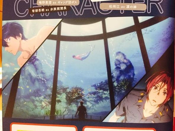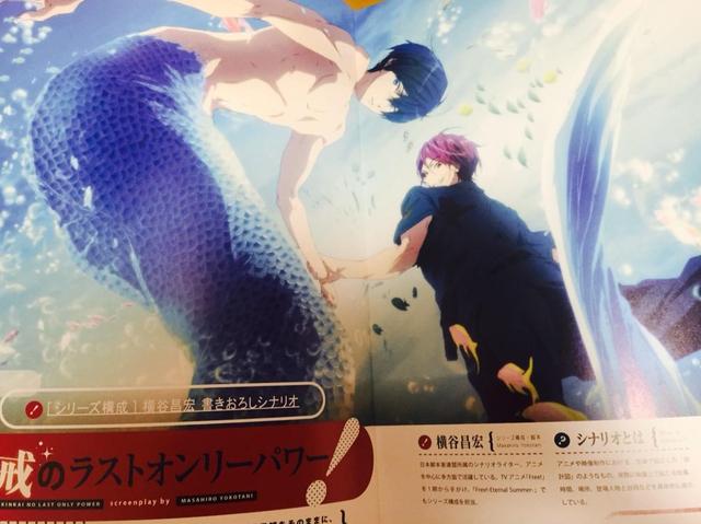 这组图疑似出自《CHARACTERS MOOK vol.5 Haruka&Rin》上刊登的,由在TV动画《Free》系列中担任系列构成横谷昌宏全新撰写的剧本故事《禁戒的LAST ONLY POWER》。图中,凛扒开遥的衬衫,用鲨鱼牙一口咬住了遥的肩膀。另外还有一张是凛一脸憧憬地仰望着在水族箱中游泳的半人鱼遥。 根据网友的爆料,故事讲述半人鱼遥在水族馆的水族箱里游泳,警卫员凛将遥逮捕,不过后来又拜托馆长笹部允许遥在水族箱中游泳。凛为了让遥看到外面的世界而将他带了出去,但是贵澄率领的一群黑衣人为了得到人鱼不老不死的能力而开始追捕遥……