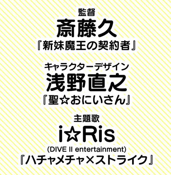 制作人员方面,担任导演的是斋藤久,他负责过的《新妹魔王的契约者》令人印象深刻;而人设由参与制作《圣哥传》的浅野直之担纲;另外作品的主题曲将是i☆Ris带来的《ハチャメチャ×ストライク》。