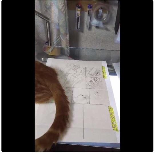 [新闻] 别人家的猫!漫画家川崎直孝的猫会帮忙扫笔屑 |