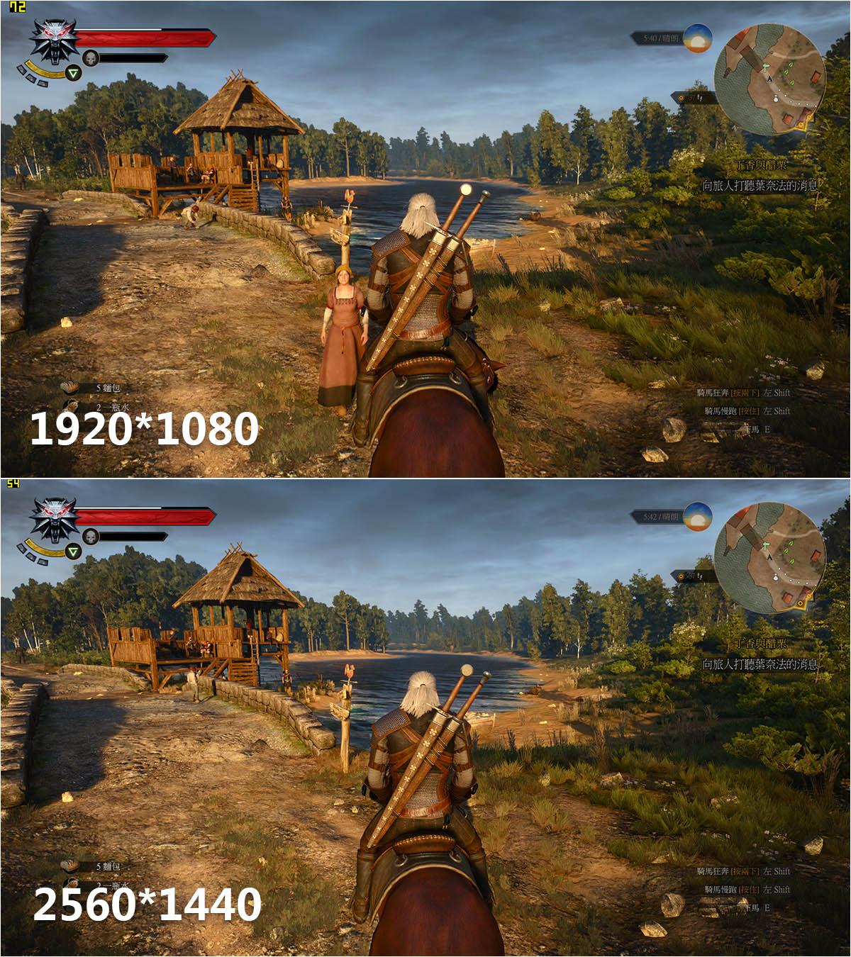 最后测试的是《巫师三》,毕竟是显卡杀手级别的游戏,最高特效下面1080P可以跑在60FPS以上,而2K分辨率的帧数则徘徊在50FPS左右,虽然流畅度还过得去,但完美主义者可以考虑降低部分特效以跑满60PFS。