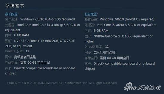 在下图我们可以看到游戏的配置需求,Steam版需要60GB,而美服PS商店则需要42GB: