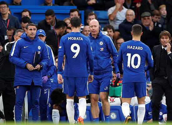 腾讯体育10月1日讯 本轮联赛主场迎战曼城,切尔西不但0-1输掉了比赛,而且还损失了锋线大将莫拉塔,由于拉伤了大腿肌肉,西班牙人上半场就无法坚持被威廉换下。