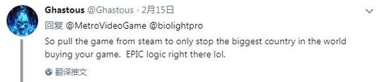 “在了解到中国玩家无法使用Epic商店这一情况后,我们感到非常遗憾,我们向因此无法买到《地铁:离去》的中国粉丝们致以诚挚的歉意。” 推文底下也有网友对Epic的锁区行为冷嘲热讽:“所以把这游戏从Steam上拉过来,却让这世上最大(指人口最多)的国家买不到你的游戏,Epic的逻辑感人。”